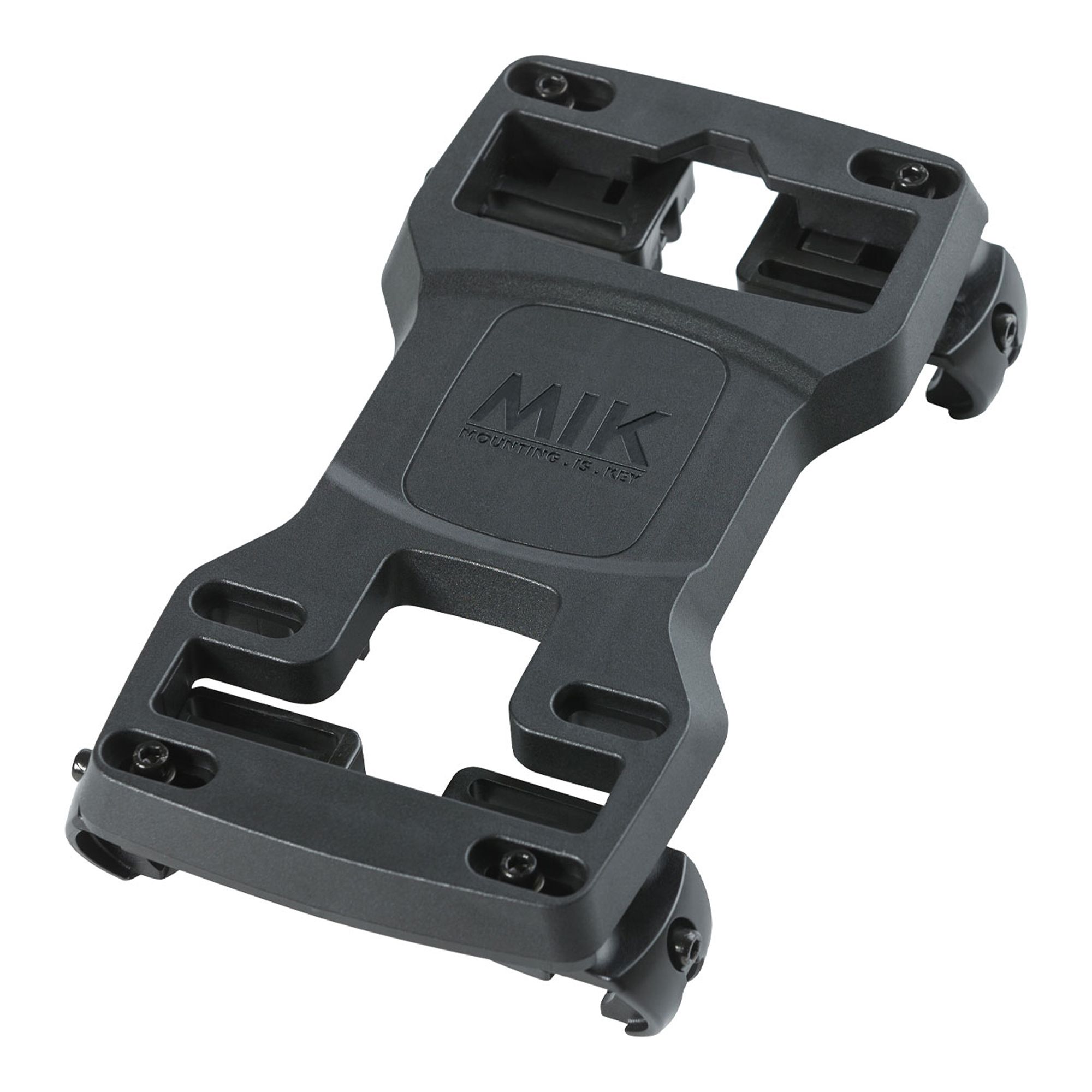 Adapterplatta som gör det enkelt att klicka på och låsa fast cykelkorgar och väskor via MIK-systemet.