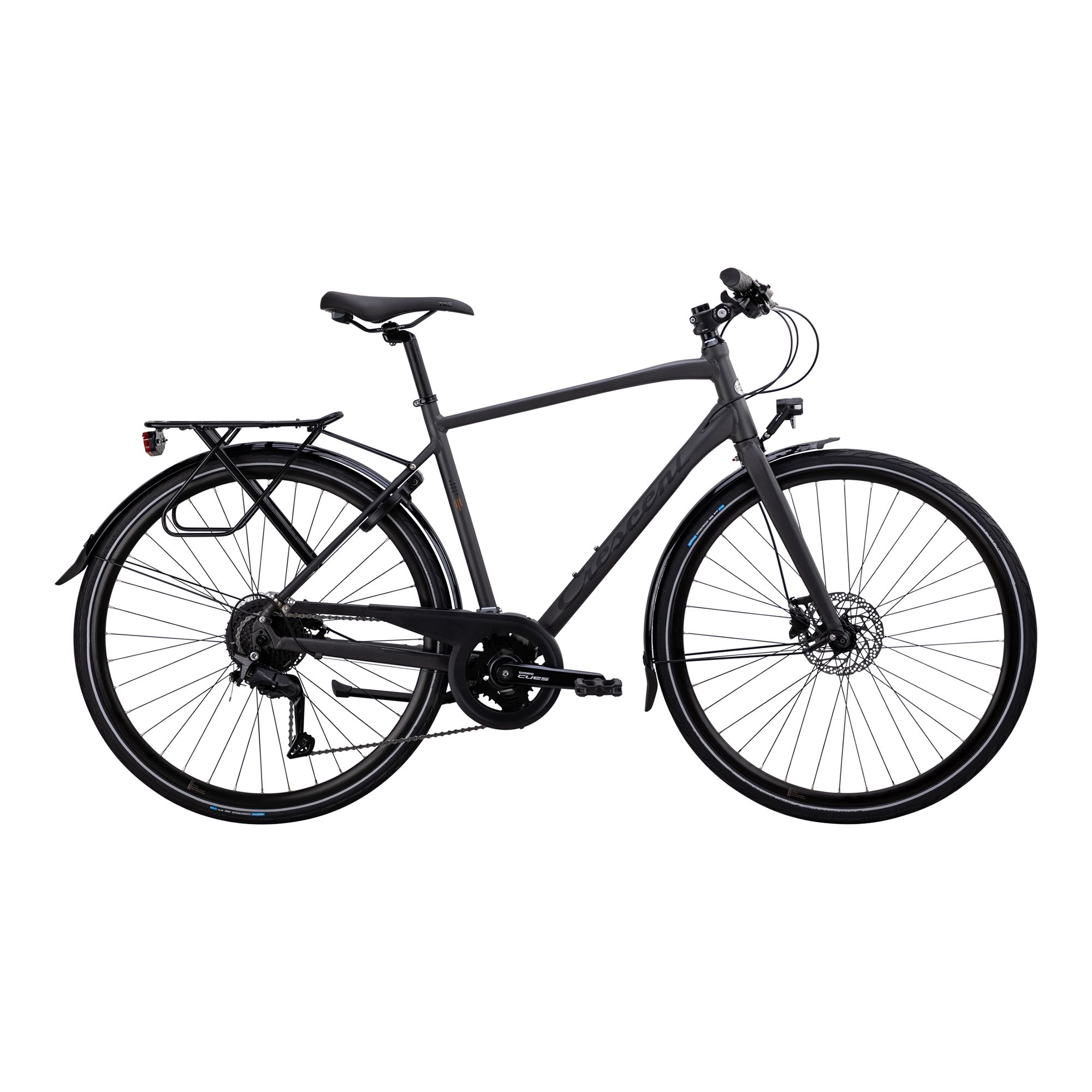 Crescent Kebne 16-Växlad är en mångsidig hybridcykel som kombinerar komfort, prestanda och funktion – perfekt för både pendling och längre turer. Den lätta och starka aluminiumramen ger stabilitet och effektivitet, medan den ergonomiska sittställningen och det lätt uppåtvinklade styret gör varje mil bekväm. Med 18 växlar via Shimano Cues 2×9-systemet har du alltid rätt utväxling, oavsett om du cyklar uppför, nedför eller på plan väg. De hydrauliska skivbromsarna är anpassade för tunga laster och ger trygg och jämn bromsverkan i alla väder.