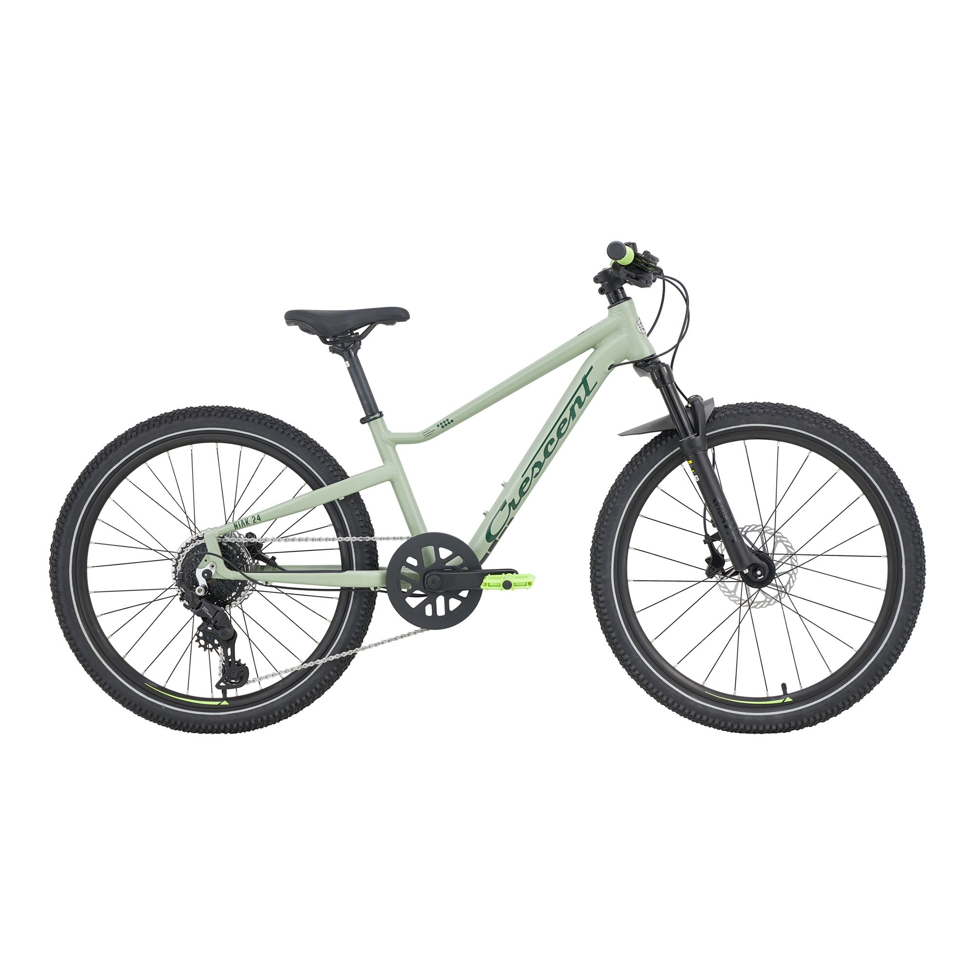 Crescent Niak 24″ är en sportig och robust junior-MTB för cyklister som är cirka 120–140 cm långa och vill ta sina färdigheter till nästa nivå. Den lätta aluminiumramen med junioranpassad geometri ger trygg hantering i både skog och stad, medan den dämpade aluminiumgaffeln är anpassad för barns vikt och tål hopp, rötter och ojämn terräng.