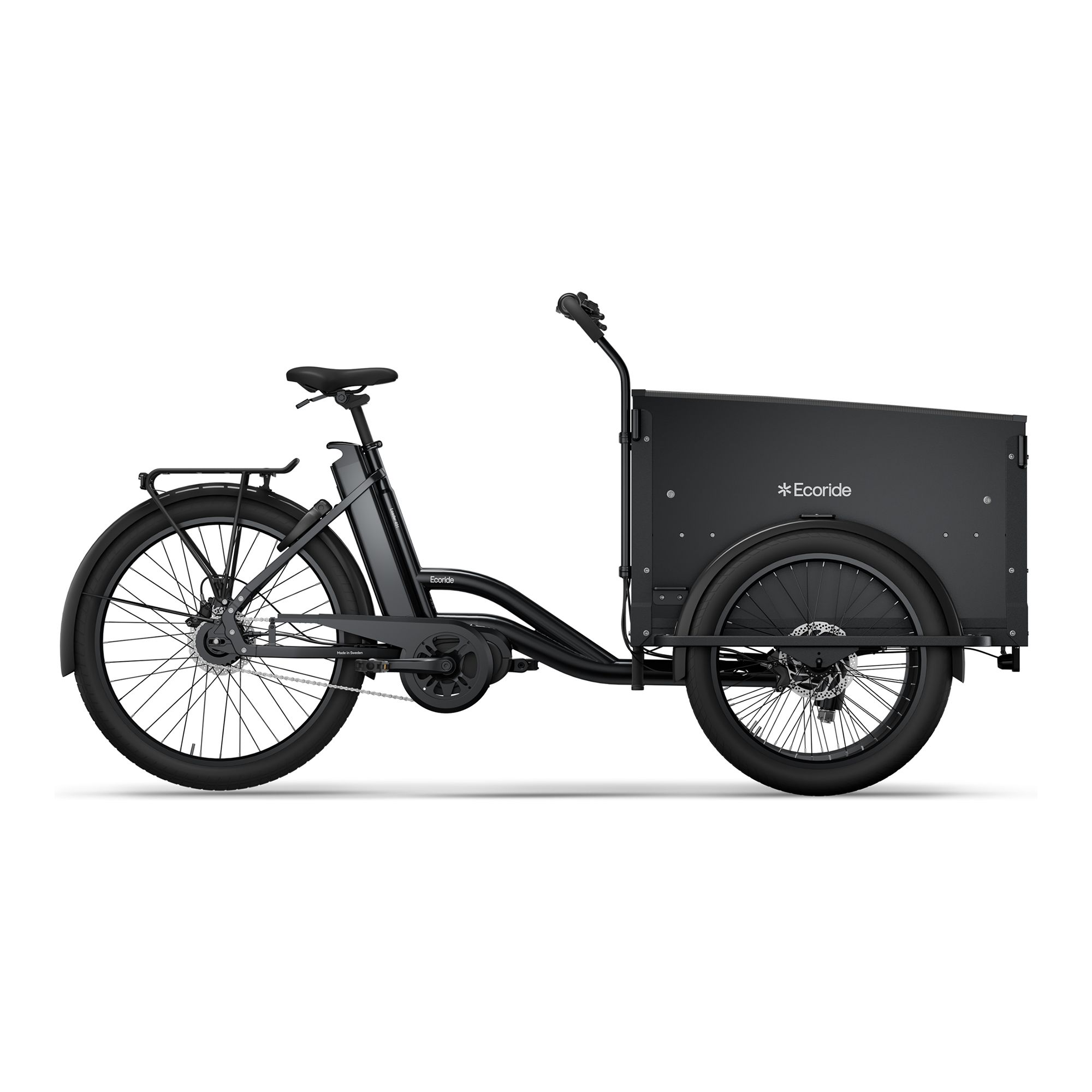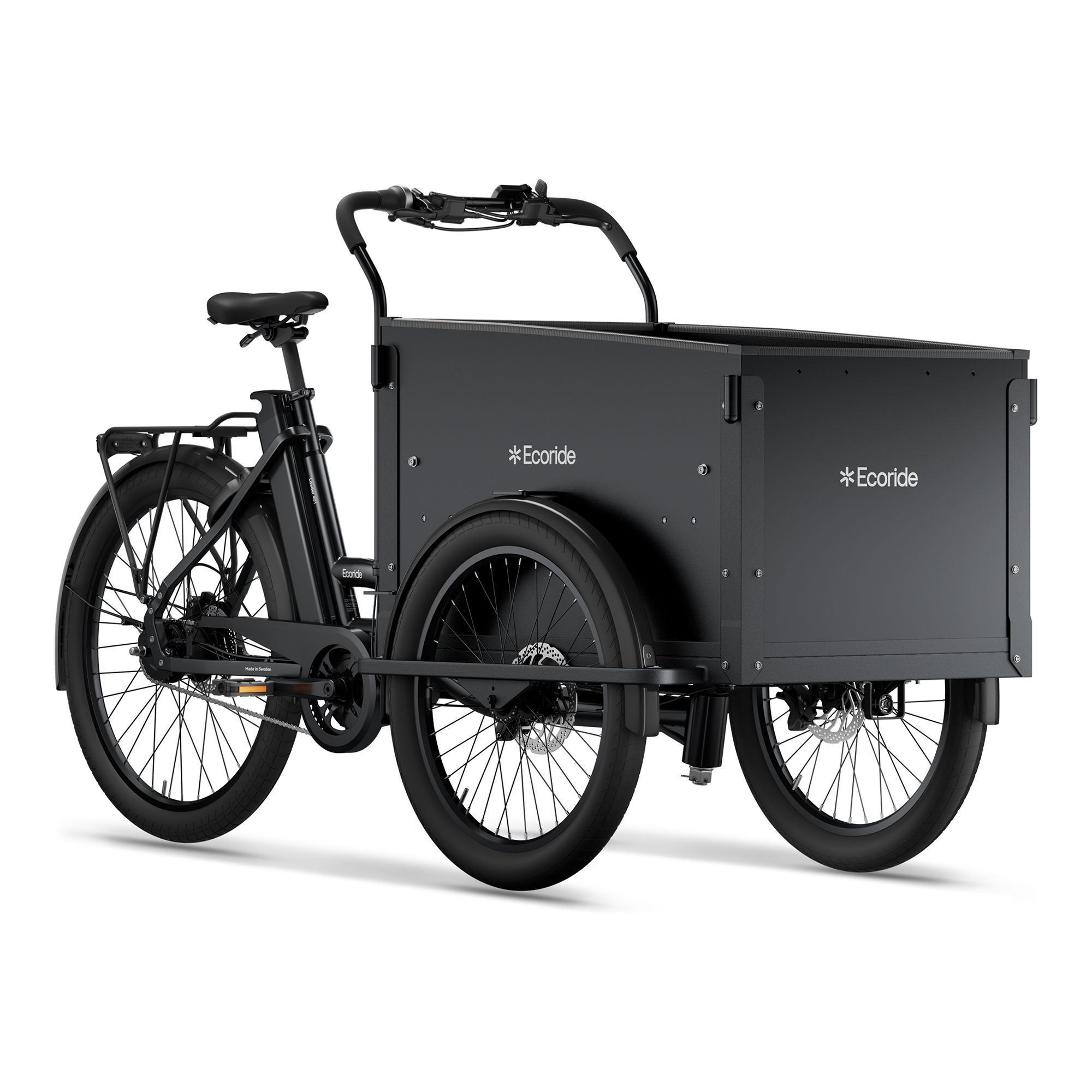 Ecoride Loader 401 är en trehjulig el-lådcykel som är utvecklad för familjer och dig som behöver en trygg och stabil transportlösning för barn och last. Den trehjuliga konstruktionen ger hög stabilitet, vilket gör cykeln säker och lättkörd även när lådan är fullastad. Den rymliga lastlådan rymmer upp till fyra barn eller större mängder packning, vilket gör cykeln väl lämpad för vardagsärenden, lämning och hämtning eller utflykter. Elassistansen kommer från en mittmonterad motor som ger ett jämnt och kraftfullt stöd vid trampning, vilket underlättar både i backar och vid tung last.