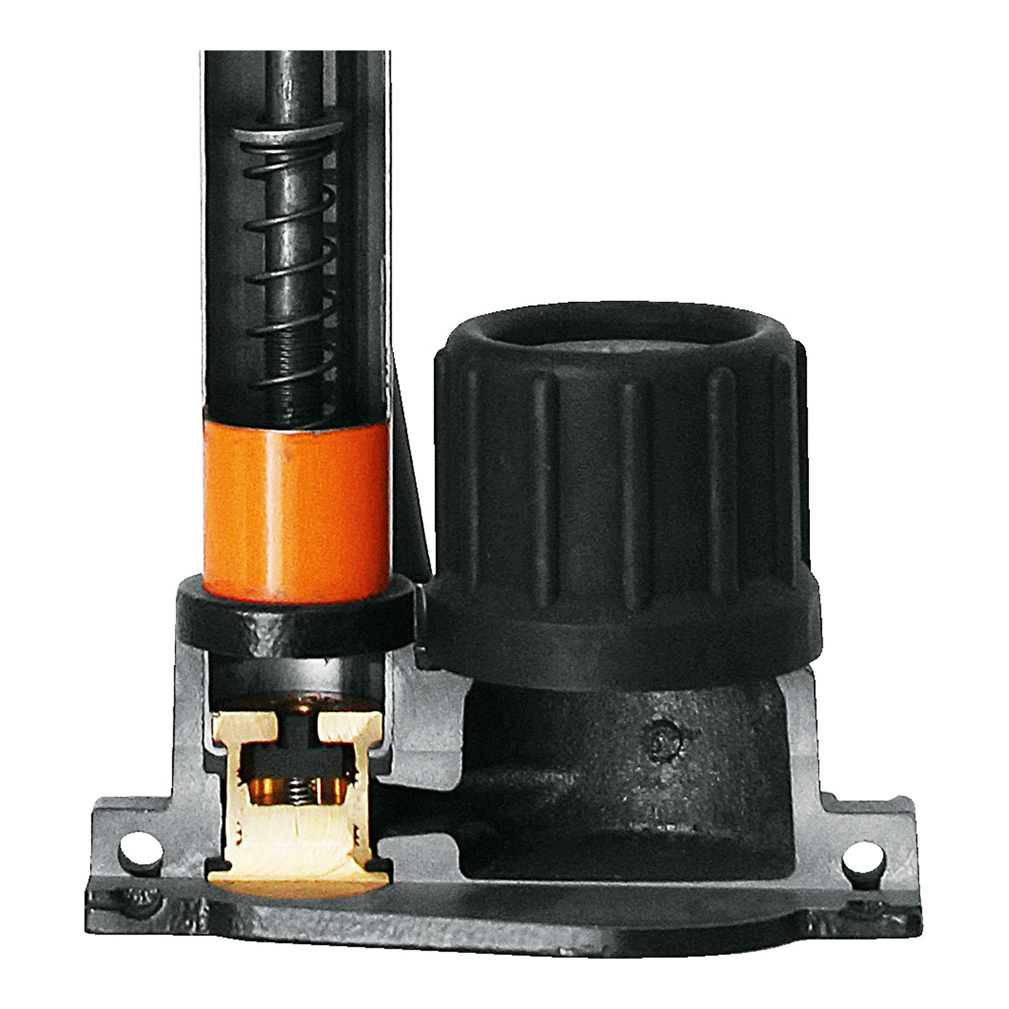 SKS Rennkompressor Multiventil 16bar Golvpump är en ikon inom cykelsporten och har använts i över 50 år tack vare sin robusta konstruktion och pålitliga prestanda. Det massiva metallröret, gjutjärnsbasen med fällbara stålfötter och det svarta trähandtaget ger en stabil och kvalitativ känsla vid varje pumpning. Den klarar tryck upp till 16 bar (230 psi) och levereras i den klassiska SKS-orange färgen. Multiventilhuvudet fungerar med AV-, SV- och DV-ventiler, vilket gör pumpen mångsidig för alla typer av cyklar.